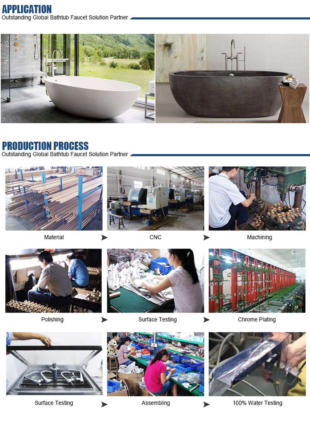 By now, all our products with CUPC, WATERMARK, ACS, CE and ISO9001 certificated. We are expert in manufacturing and marketing floor standing tub faucet, deck mounted faucet and 3 way purified faucet.